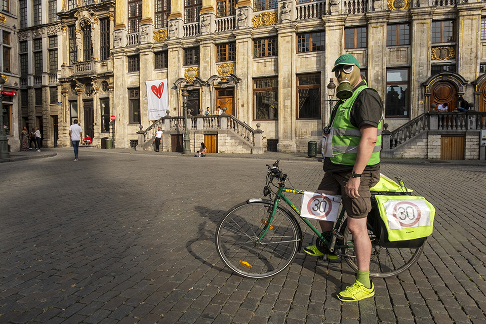 Mariette at her garden, Anderlecht, 14th of May, 2020Zhang’s takeaway, Square Henri Rey, Anderlecht, April 2020Dan, 30 kms for cleaner air, Grand place, Brussels, June 2020Milka, Black Lives Matter, Brussels, 7th of June, 2020Olivier, Golden hero, Molenbeek, 8th of November, 2020Desirée saluting the invisible audience, Rue des Goujons, Anderlecht, November 2020Castélie, ‘Het Licht’, Anderlecht, December 2020